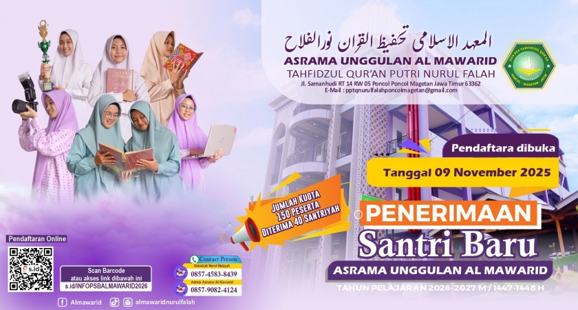 INFORMASI PENERIMAAN SANTRIYAH BARU ASRAMA AL MAWARID PPTQ NURUL FALAH PONCOL MAGETAN TAHUN PELAJARAN 2026/2027
